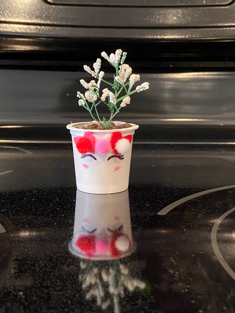 For this one we painted the popcorn kernels brown to look like dirt in the pot.