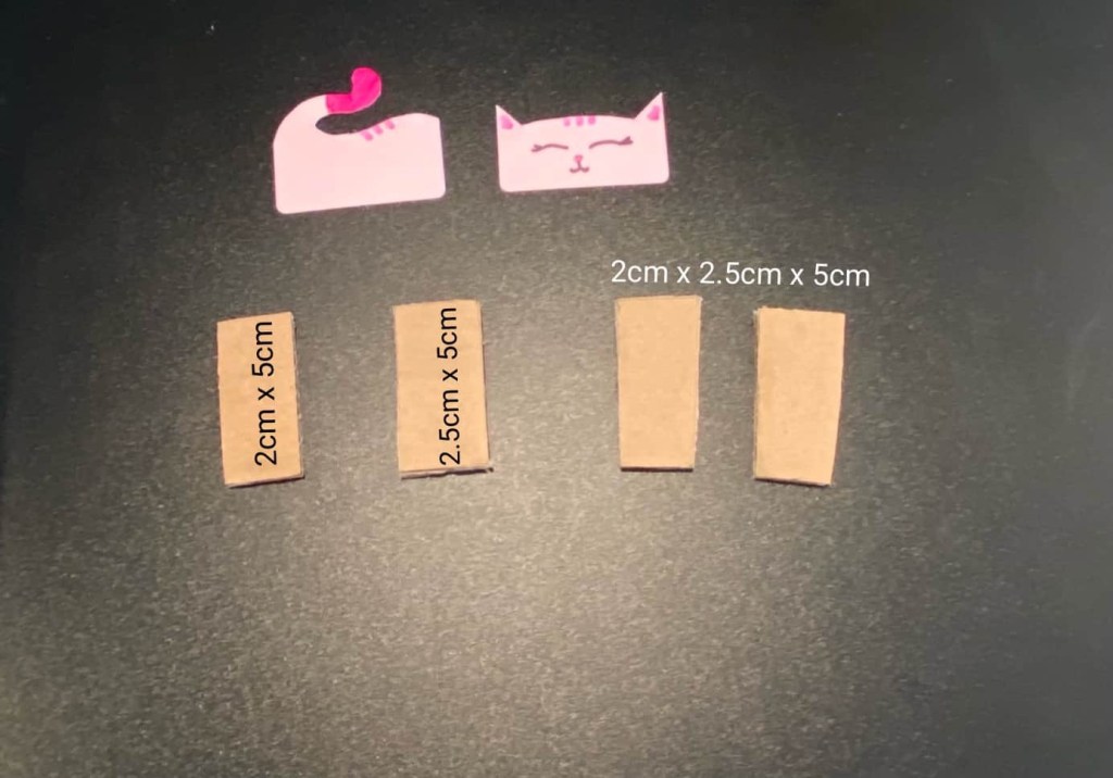 Next, use cardboard to build the main box. We cut pieces to the measurements shown. The back of the box is about 0.5cm higher than the front at a bit of a slant, but you don’t have to do that if you don’t want.
