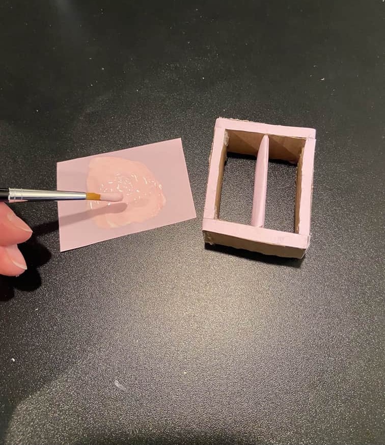 We mixed pink and white paint to match the shade on our gift card pieces.