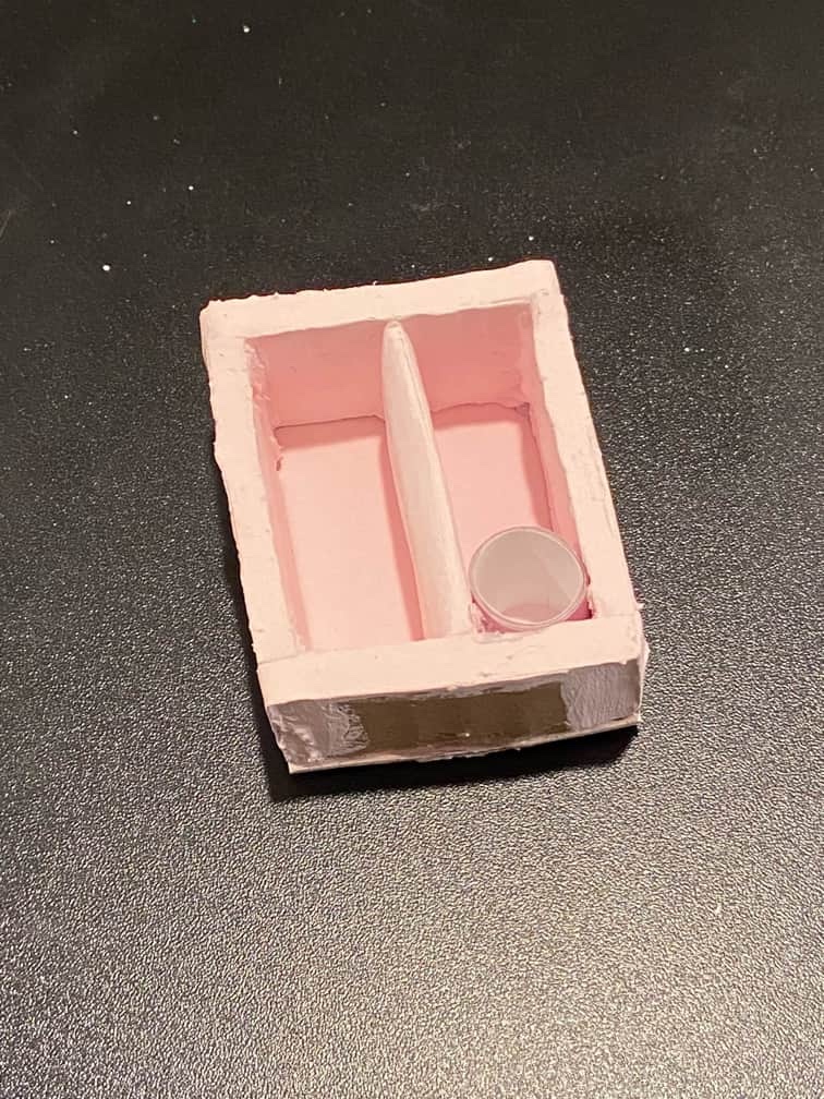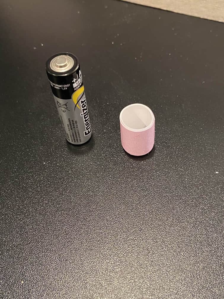 Wrap the paper around a battery, or any cylindrical object that fits in the compartment of your box. Use a glue stick to secure.