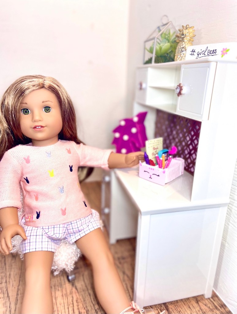 I got the inspiration for this craft from some pictures on Pinterest, back when we were DIY’ing my daughter’s desk with new school supplies for homeschool, and I have been wanting to make this for our dolls ever since!