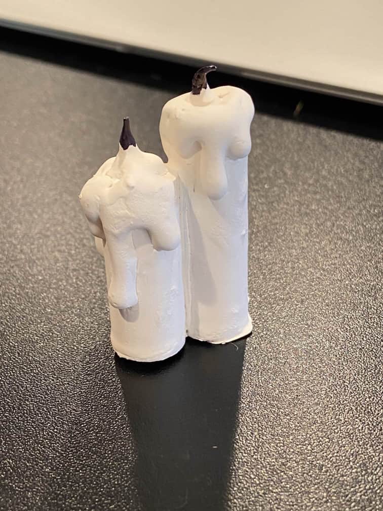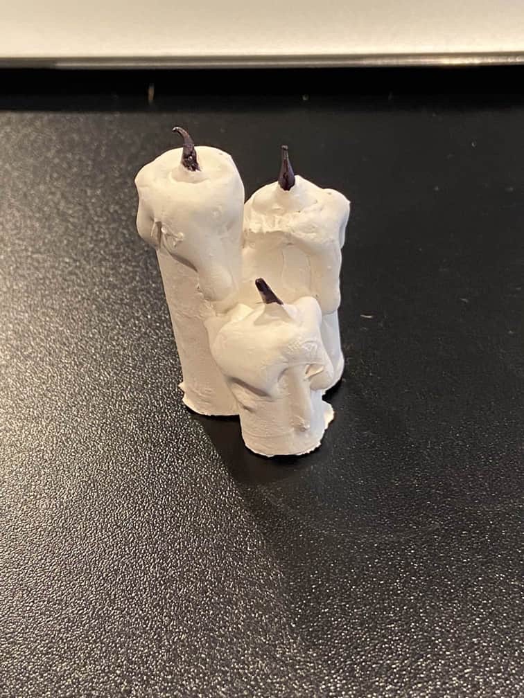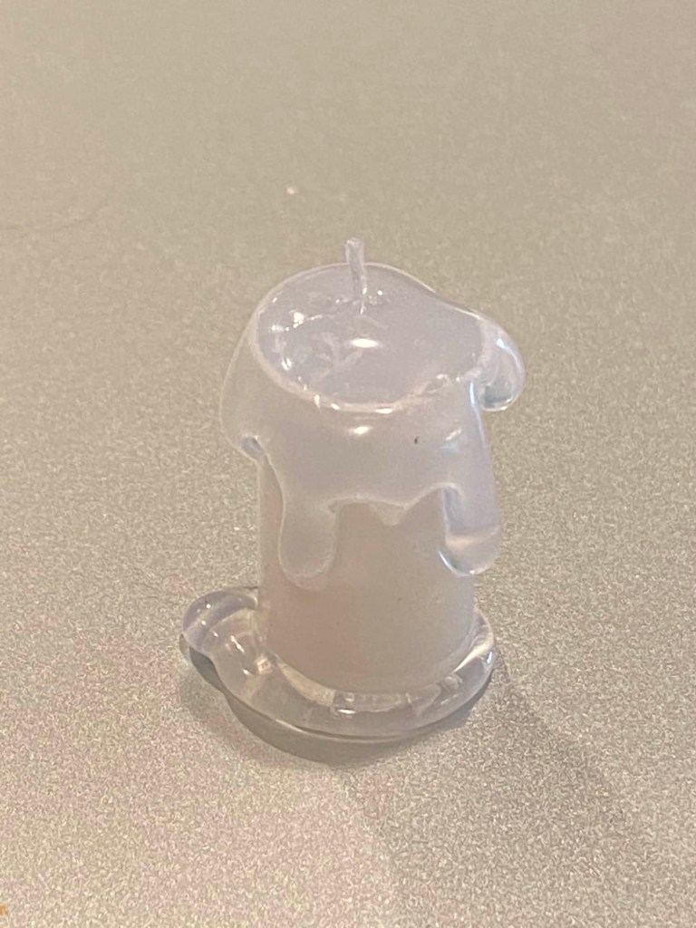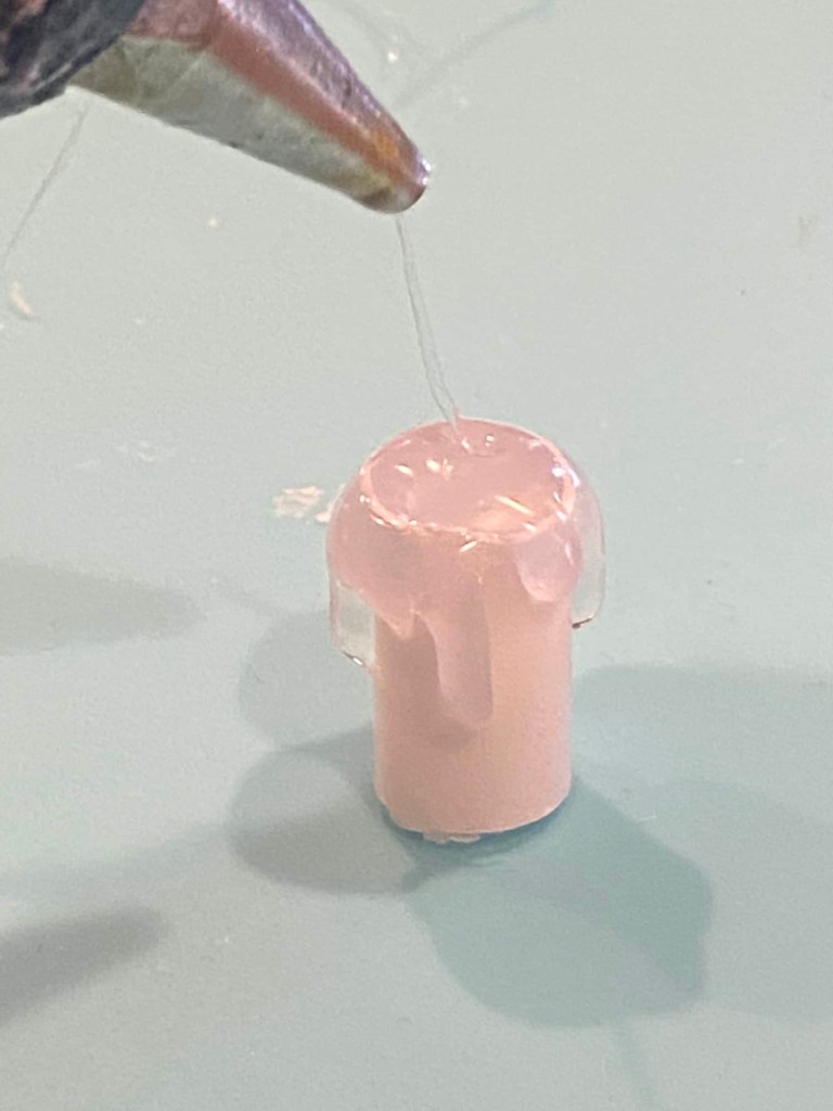 We also added a glob of glue on top and let the strand from the glue gun stretch and cool. Then we clipped it off to form the wick.
