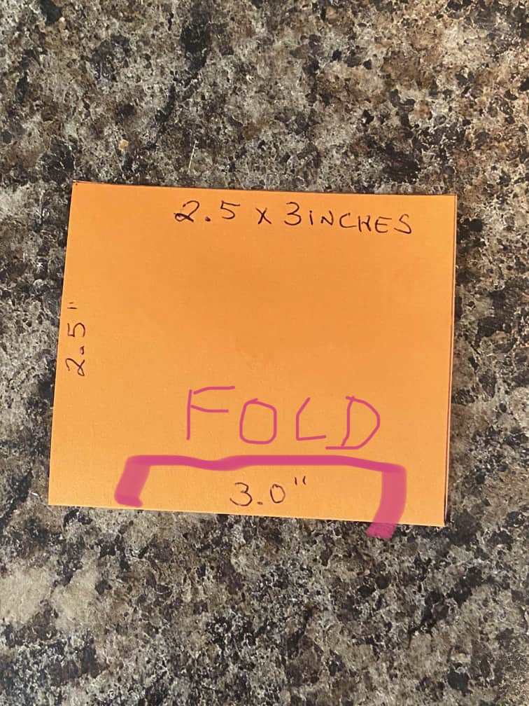 First, let’s make a paper template for the purse. Ours is 2.5 inches by 3 inches.