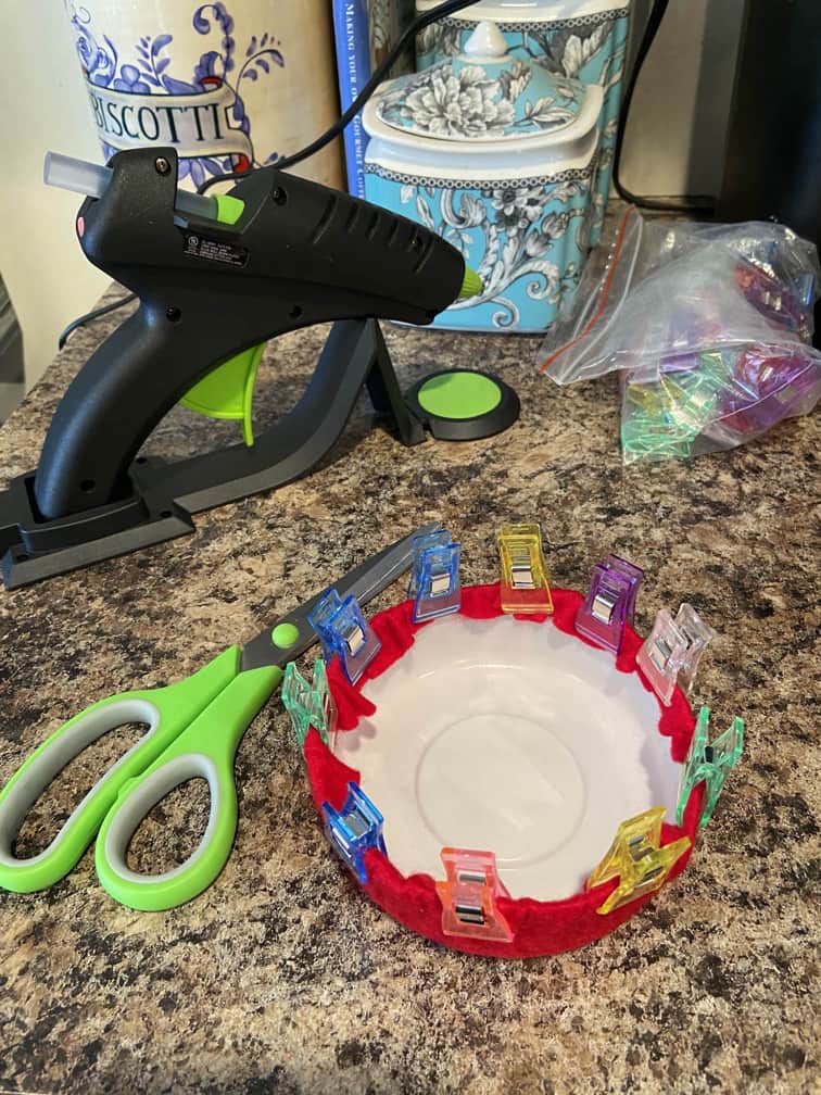 This was definitely a game changer for me! I was able to use small, controlled spots of glue, and I could clip it again to wait until it was dry. No more burned fingers trying to hold everything in place while I juggled the glue gun!