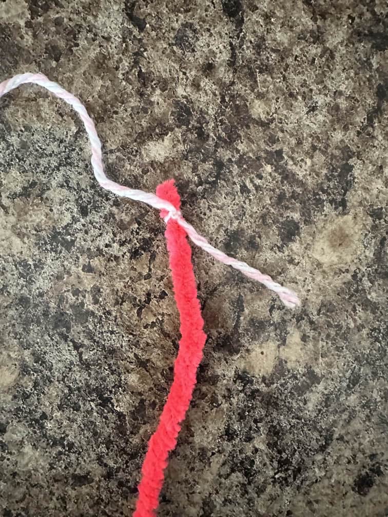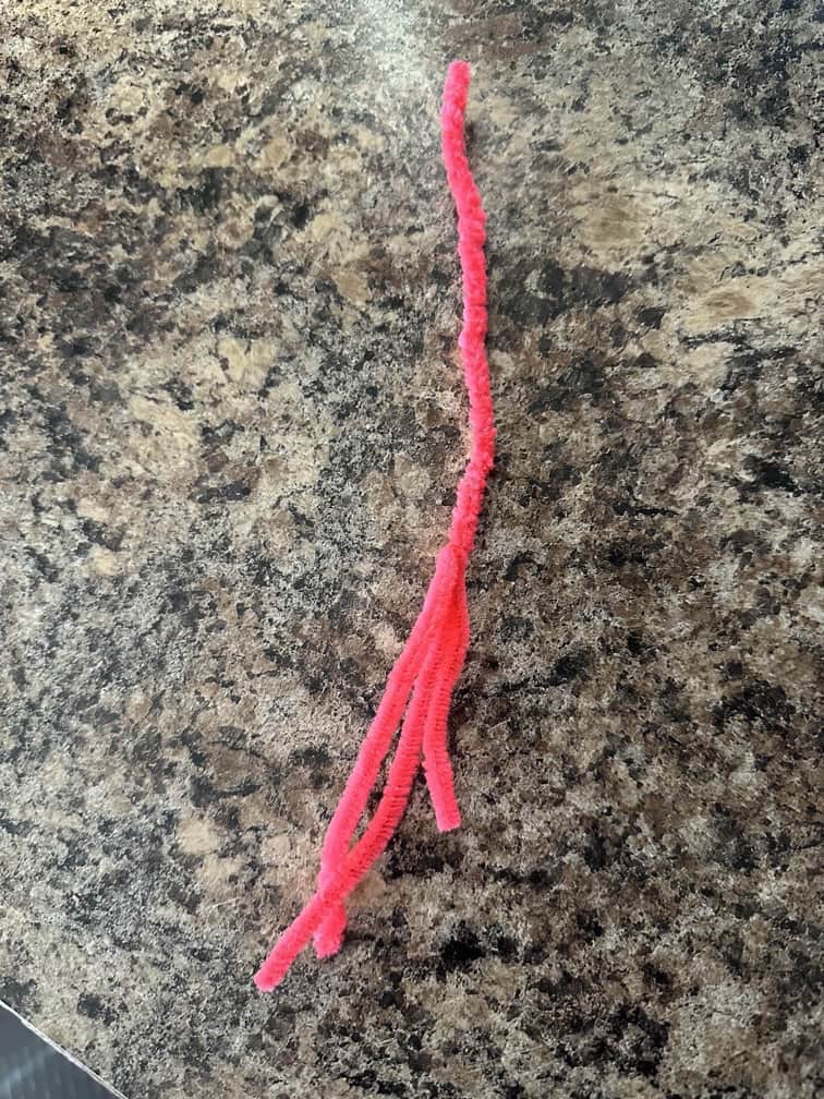 Now let’s get started! First take three pipe cleaners about 12 inches long (this measurement is just a starting point and doesn’t matter too much since we will be cutting these to size later anyway)