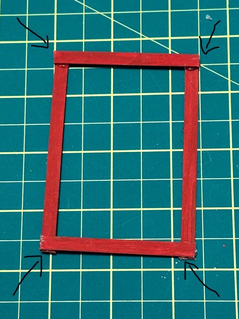 Don’t assemble the boxes top, side, bottom, side. Instead, place your two side pieces and glue the top and bottom on. The corners at the arrows should be assembled the same way.