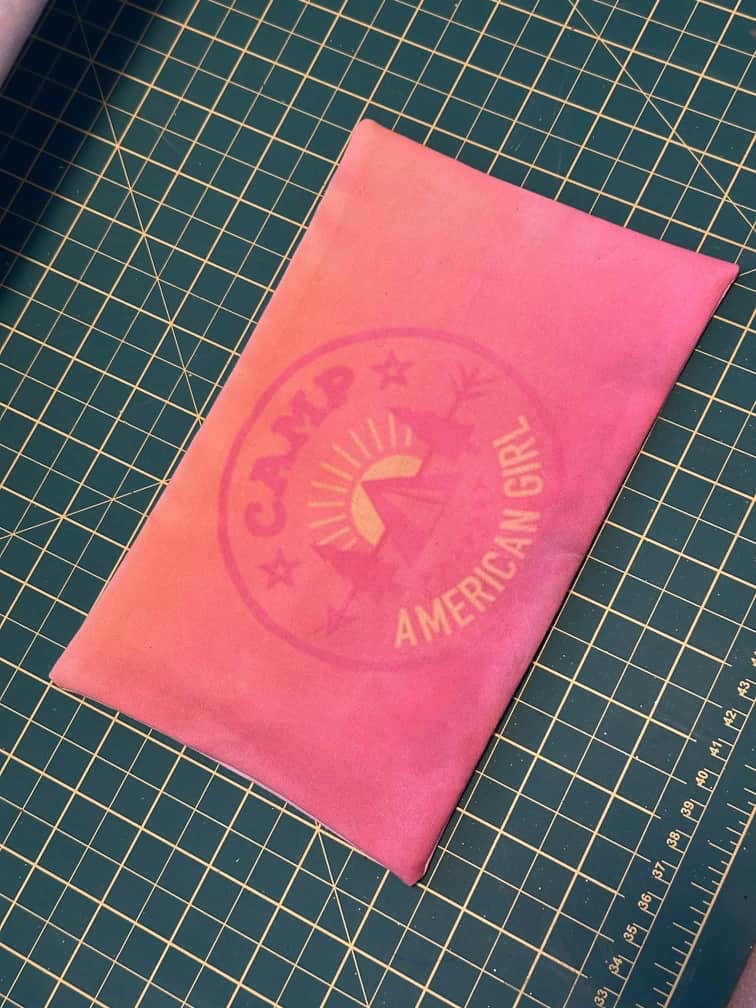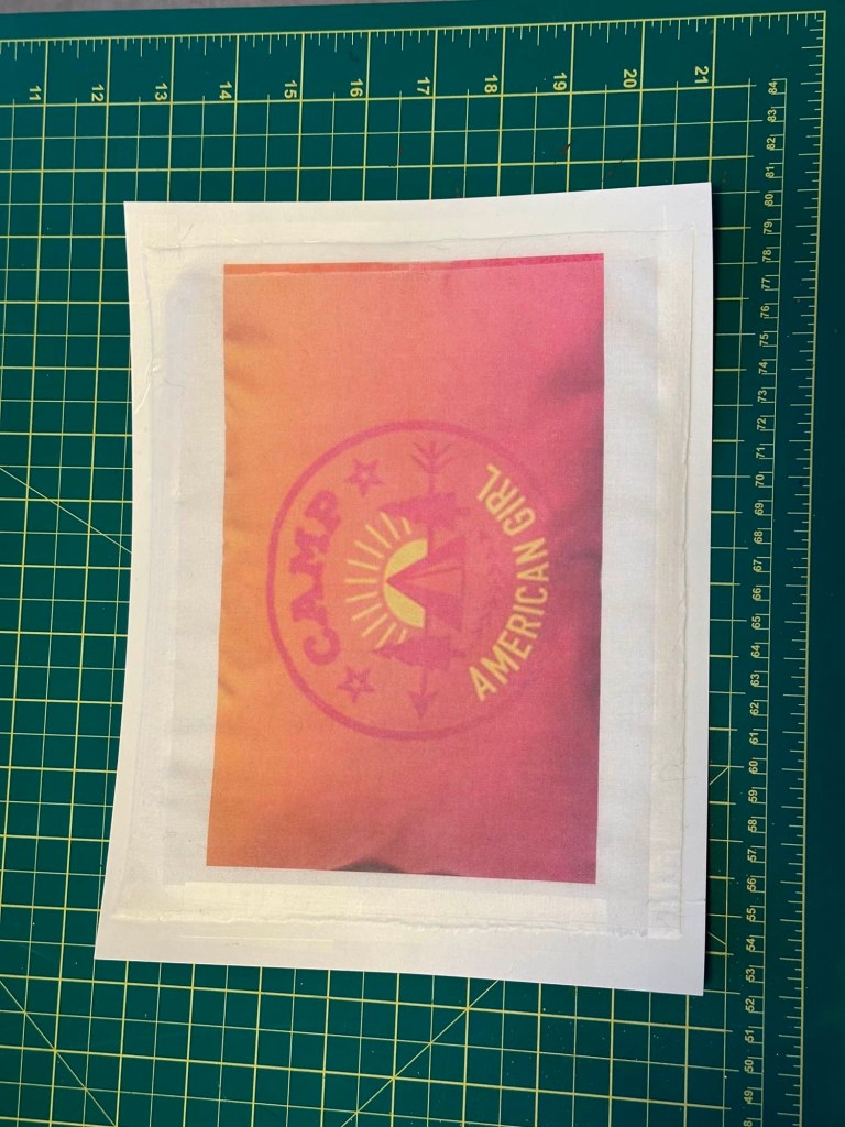 To make the ombre orange camp pillows, I printed the image onto fabric. I taped fabric onto a sheet of paper and fed it through my printer.