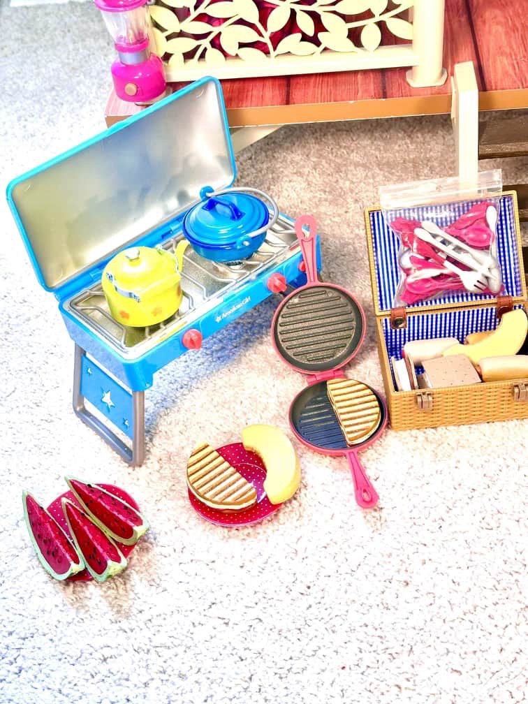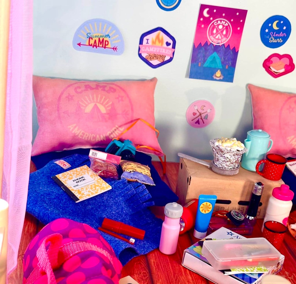 I set out immediately to gather up every doll camp accessory I could find. Here is what is included in the original.