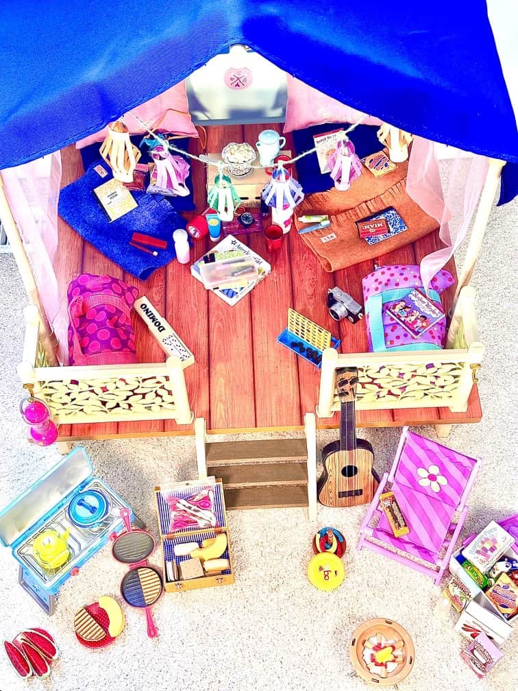 So if you have Kira’s platform tent, it can easily be transformed into a camp hangout or even a rainforest house. I just feel why buy so many of these large doll house type items when you can find multiple uses for the one you might already have.