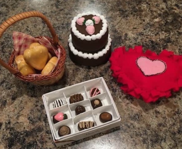 Other Valentine doll crafts include this adorable cake and chocolates set from our Secret Valentine Doll Exchange.