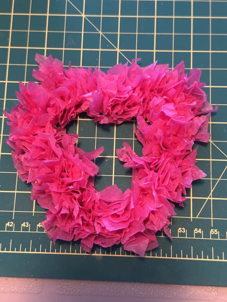 I also used a bit of glue to shape the top of the heart a little better. The tissue tends to make it difficult to see the heart shape. Just trim, scrunch and glue a bit to recreate the shape.