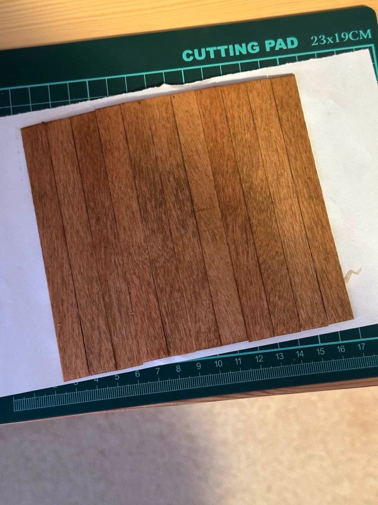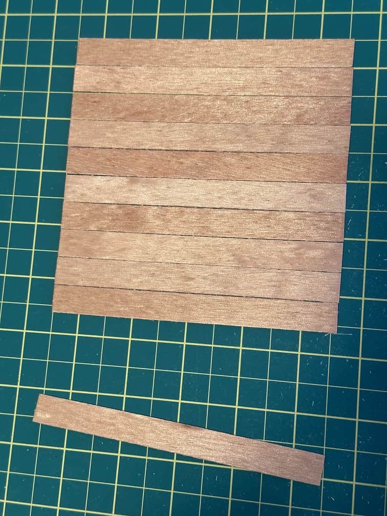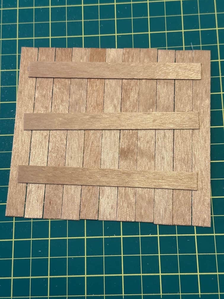 I had these craft sticks in my stash, so I decided to use them. Popsicle sticks would work just as well. I laid them out evenly. Then I glued three craft sticks on top to secure them.