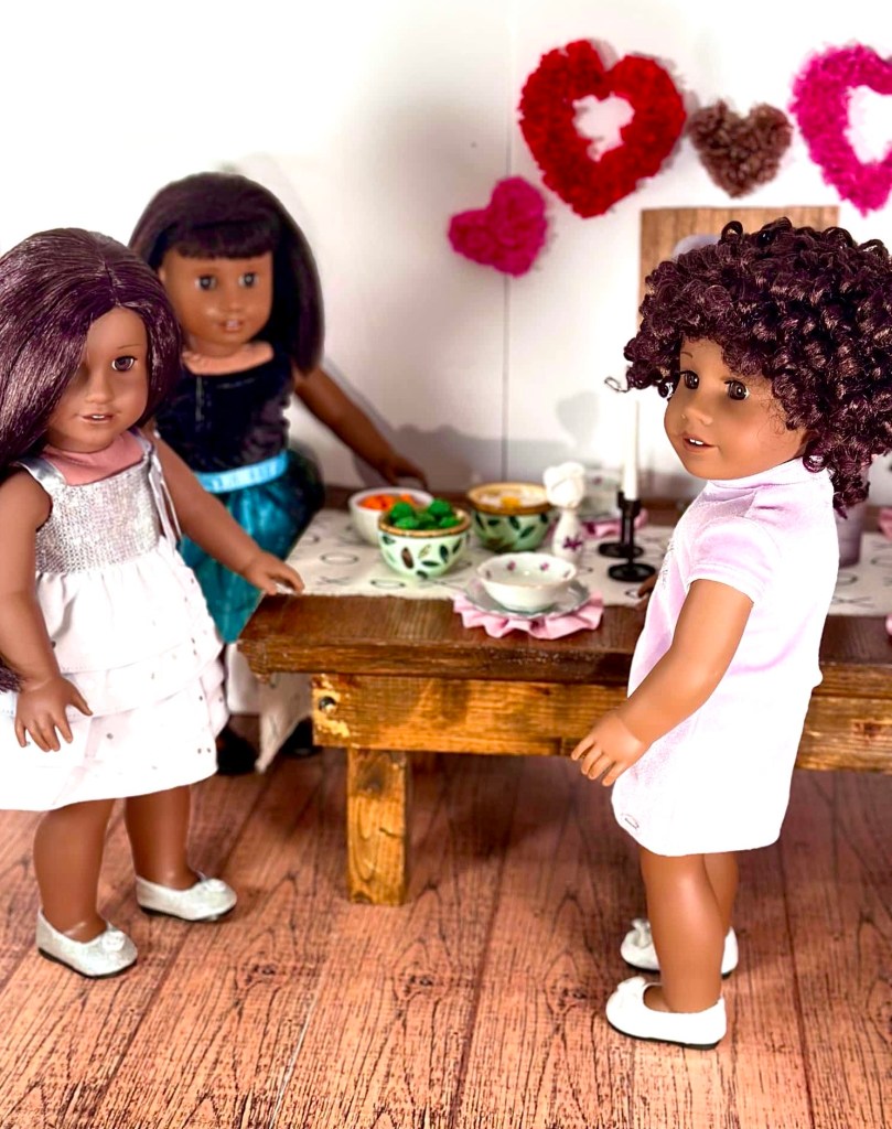 I love making Valentine’s decor for the dolls. Awhile back I made a few pieces, but not many. We made some Valentine’s pots.