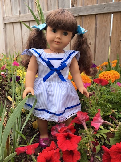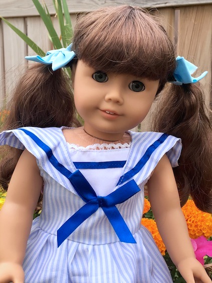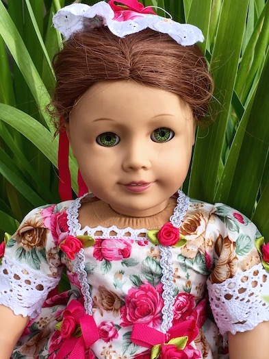 Samantha was our very first AG doll. She is eight years old. Her interests include reading, tea parties, and picnics in the park. She likes art and painting too. She has a love of nature and enjoys working in the garden. She also loves animals. She is kind and compassionate. Her best friend is Summer King.
